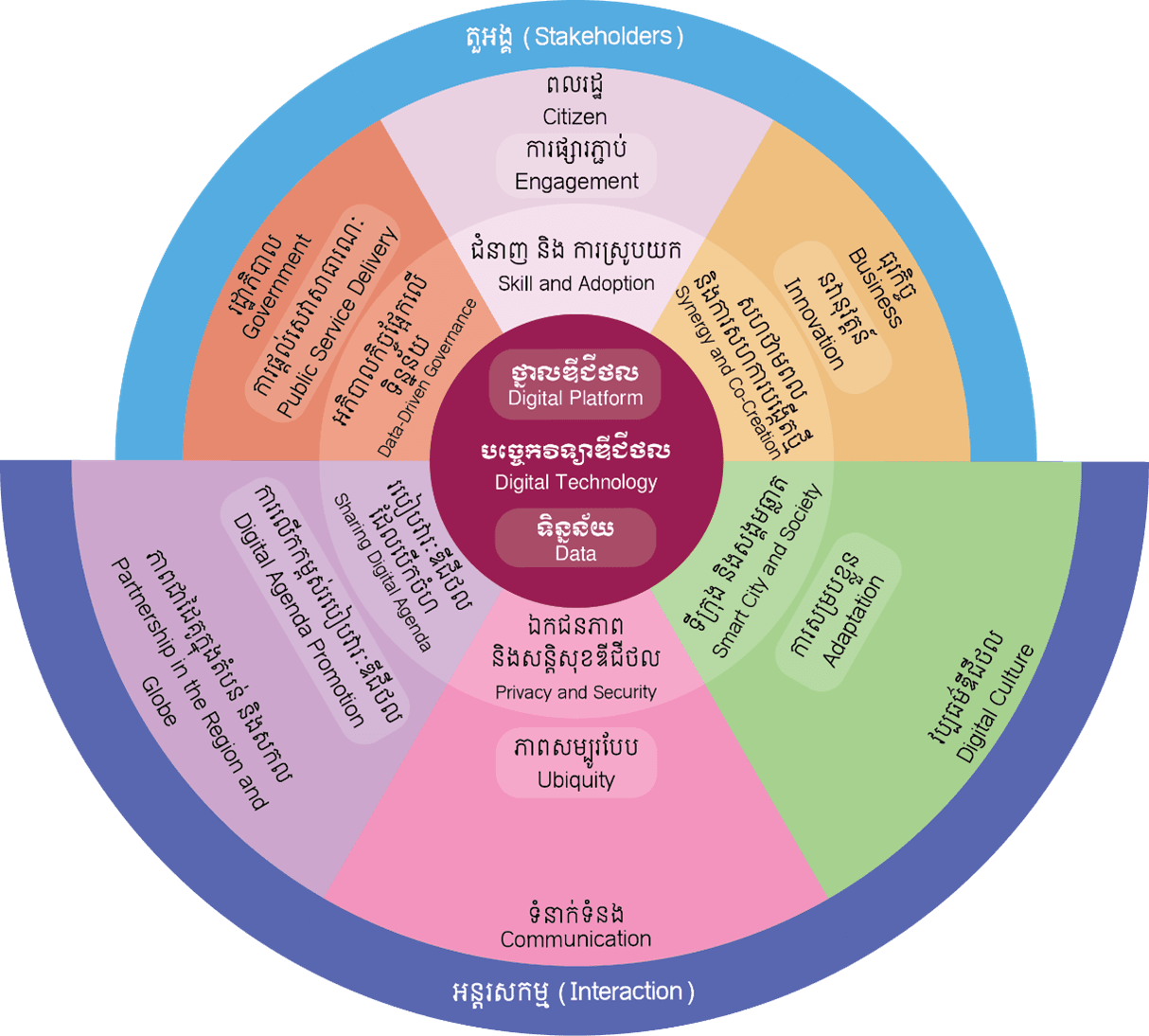 គំនូសបំព្រួញស្ដីពីអន្តរសកម្មរវាងតួអង្គសំខាន់ៗ ផ្អែកលើមូលដ្ឋានបច្ចេកវិទ្យាឌីជីថល